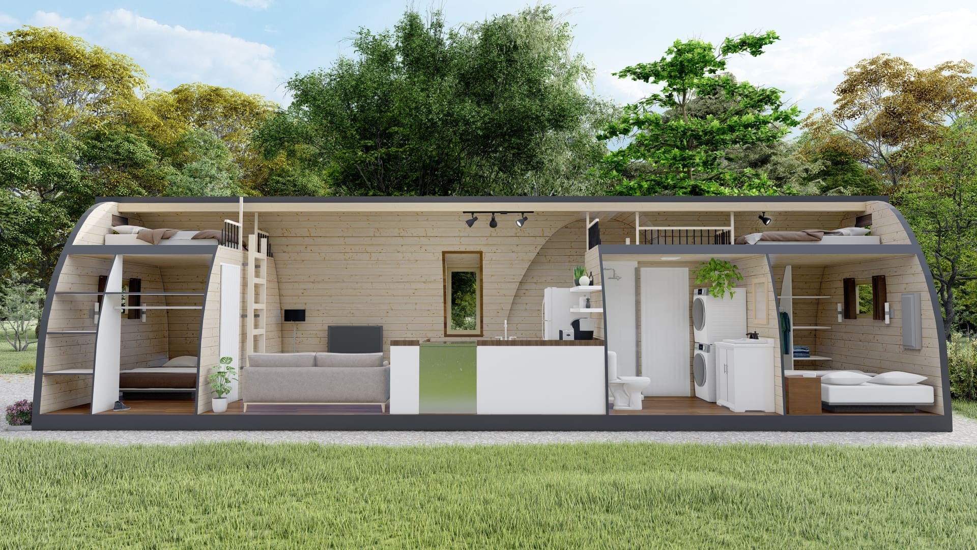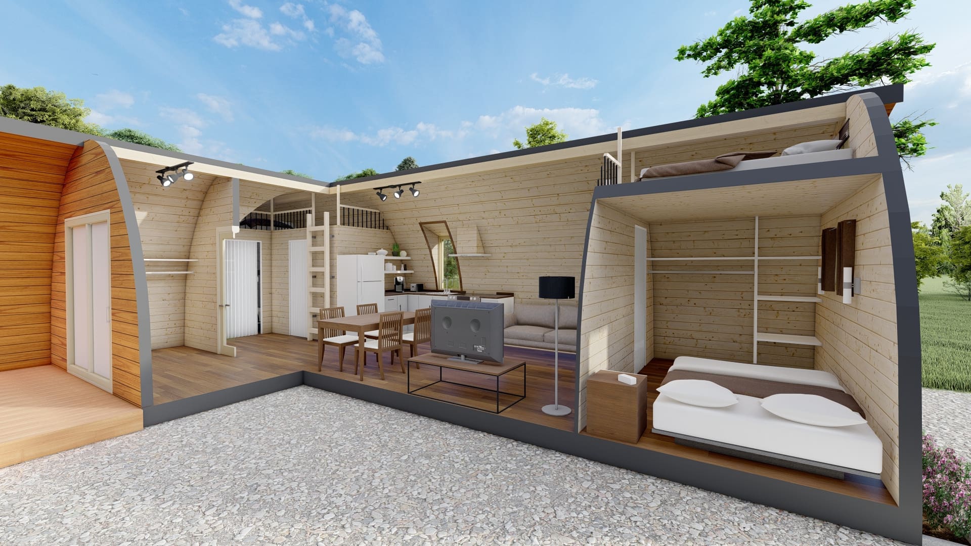 Chaleureux et astucieux, nous pouvons préparer votre POD pour qu'il soit utilisable et confortable toute l'année.