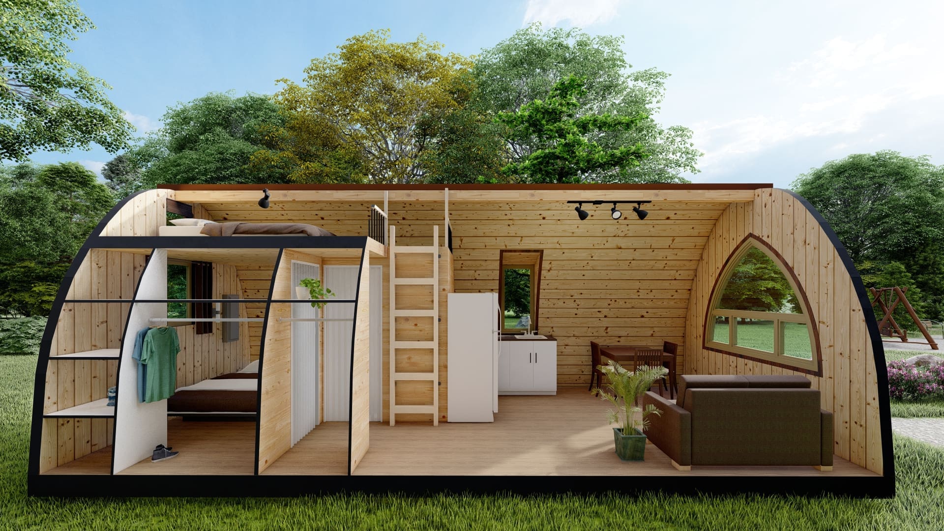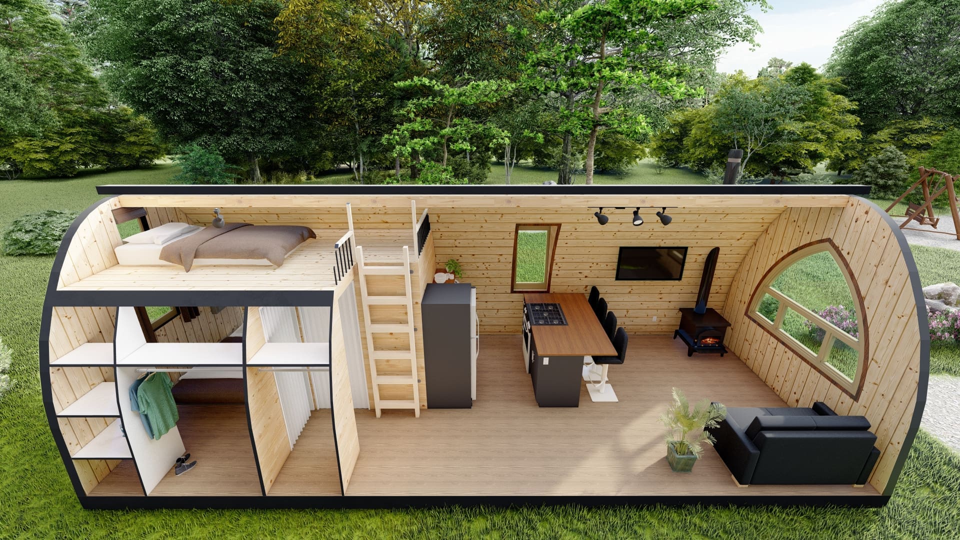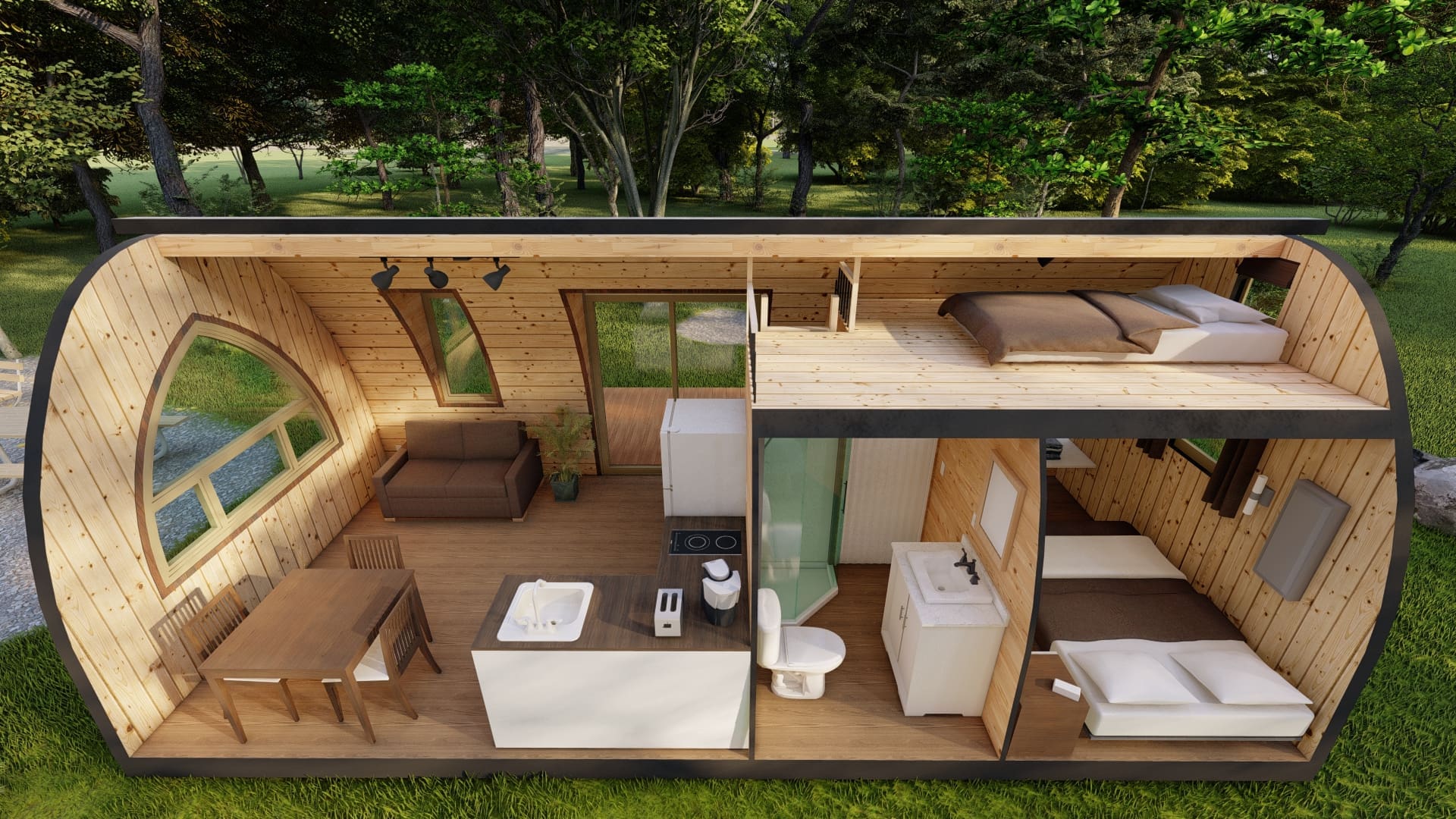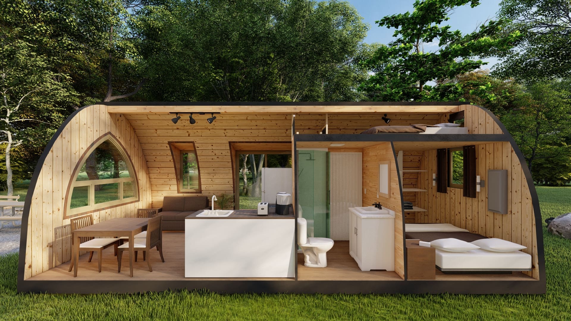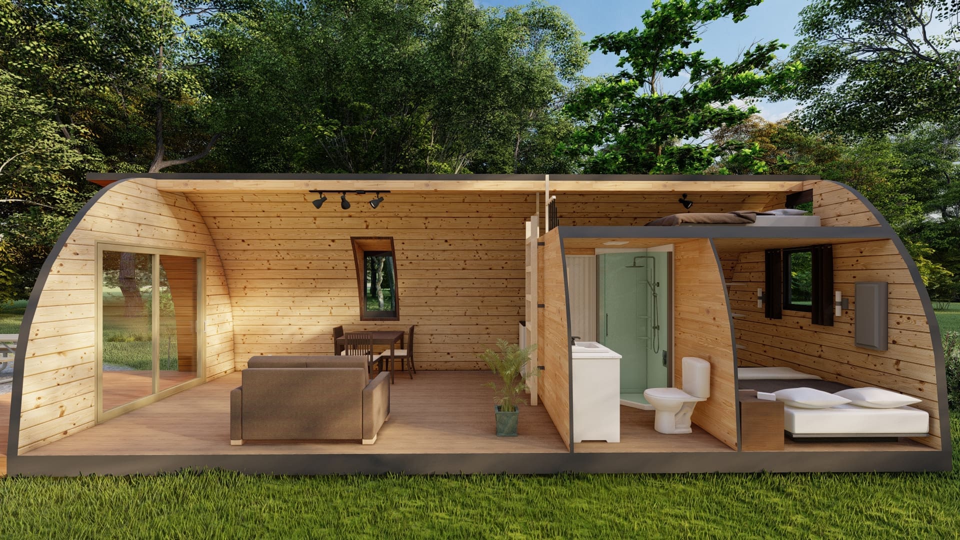 Chaleureux et astucieux, nous pouvons préparer votre POD pour qu'il soit utilisable et confortable toute l'année.